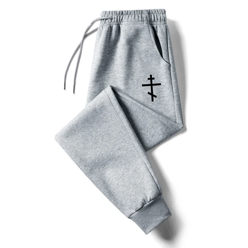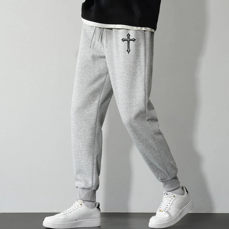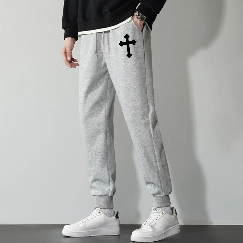 Cross Print Sweatpants for Men Christian Athletic Running Joggers Trackpants Autumn Winter Warm Cozy Fleece Lined Pants Trousers