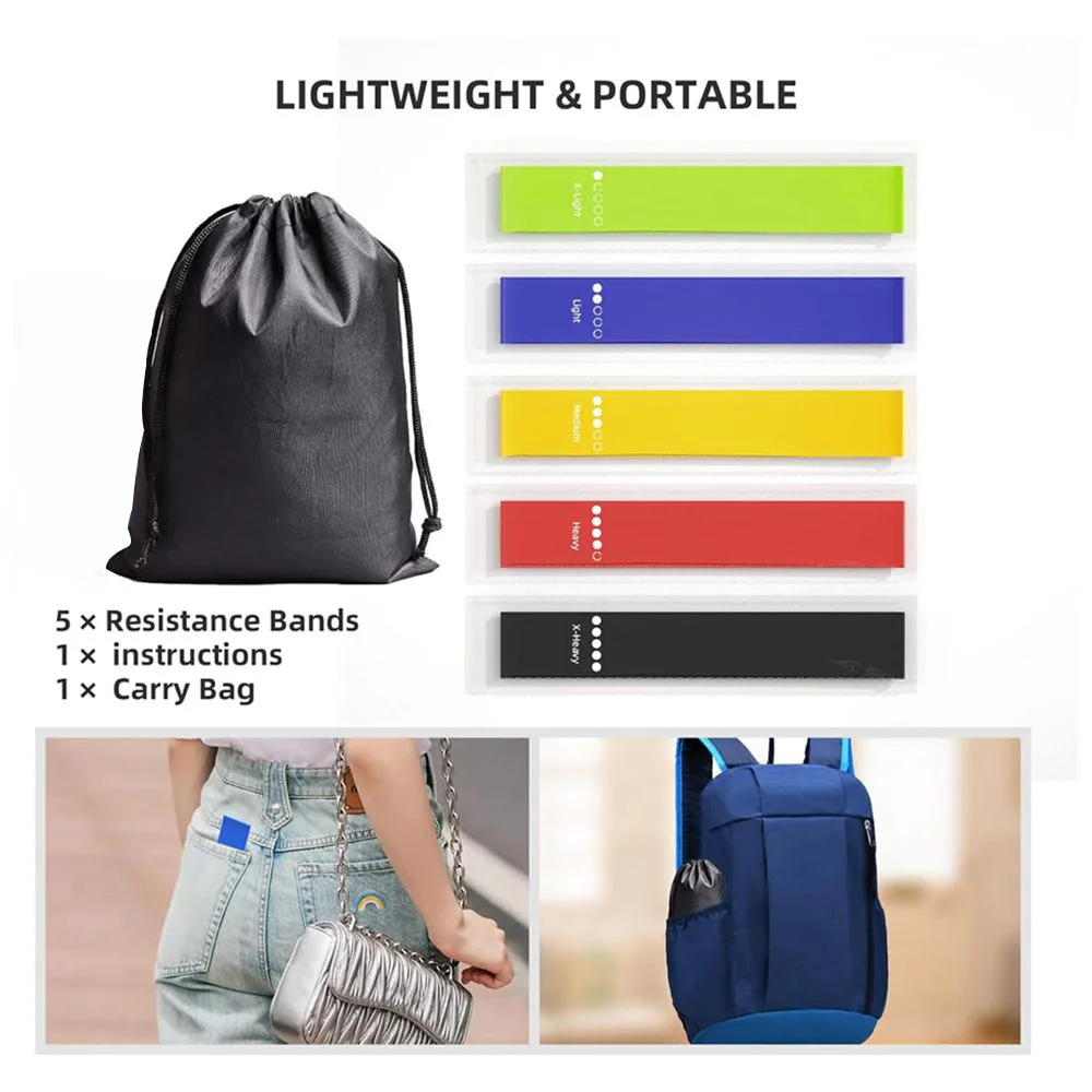 1. a set of Resistance Bands for stretching and strength training includes five colors representing different tensions (X-Light, Light, Medium, Heavy, X-Heavy). Great for those just starting out or experienced fitness enthusiasts, they will all be perfect.